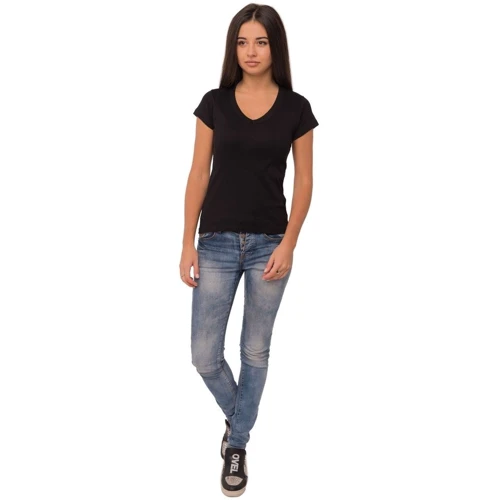 Однотонная футболка с плавным V-образным вырезом — вот что способно сделать более ярким повседневный лук в теплое время года. Изделие создается из высококачественной ткани под названием рибана. Она на 100% состоит из хлопковых нитей, потому футболка отлично садится на любую фигуру и обеспечивает естественную вентиляцию.