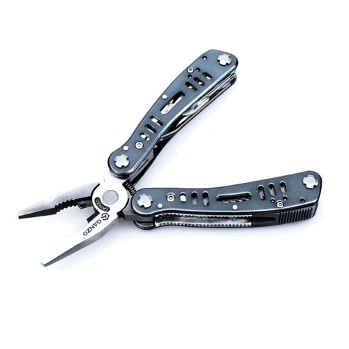 Модель Ganzo G203 представляет из себя полноценные плоскогубцы с мощными кусачками и возможностью плотного захвата круглых предметов, а также целым комплектом дополнительных инструментов внутри рукояток. В качестве материала для мультитула этой модели используется сталь 440С. Она относится к разряду нержавеющих сплавов с хорошими показателями твердости. Все элементы мультитула покрыты дополнительным слоем черной порошковой краски, которая также оберегает металл от коррозии. Это современное и очень стойкое покрытие, которое не стирается в процессе использования инструментов. А матовый черный мультитул выглядит действительно стильно и очень презентабельно. Из дополнительных инструментов, в модели Ganzo G203 присутствуют пила, серрейторный и обыкновенный нож, миниатюрные ножницы, открывалка, шило, маленькие ножнички, держатель для сменных бит. Все сменные насадки для отвертки хранятся в одном общем органайзере и закрепляются на держателе при помощи магнитного переходника. Мультитул вместе с битами хранится в плотном чехле из нейлона, который закрывается на кнопку, легко стирается в случае необходимости и быстро высыхает, если намокнет.