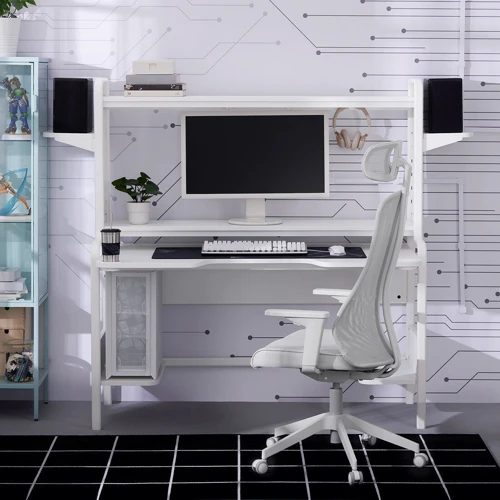 Рабочая станция чрезвычайно удобна для работы, так как контурная верхняя часть стола позволяет вам сидеть близко и обеспечивает поддержку запястий и предплечий.