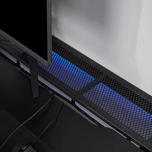 Металлическая сетка на задней части стола позволяет воздуху проходить через компьютер и настолько прочна, что к ней можно даже прикрепить несколько мониторов.