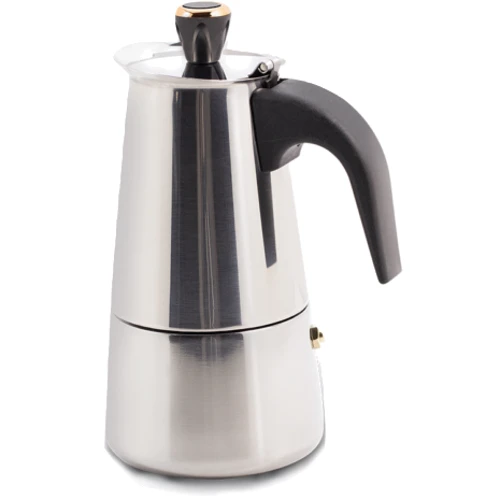 # Использование: Наполните нижнюю емкость водой, поместите сверху емкость-фильтр и наполните ее молотым кофе, не утрамбовывая его. Оденьте верхнюю секцию и прокрутите для закрытия. Убедитесь, что фильтр и силиконовое кольцо на месте и плотно прилегают друг к другу. Обратите внимание, что очень важно обеспечить таким образом полную герметичность. При приготовлении кофе уровень нагревания должен быть низким! Когда кофе перестанет поступать в верхнюю емкость, кофеварку необходимо убрать с нагревающей поверхности. Ароматный горячий кофе готов.