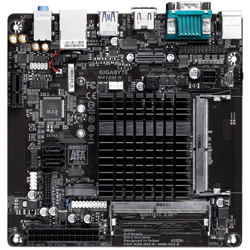 Материнская плата Gigabyte N4120I H форм-фактора Mini ITX сочетает в себе широкую функциональность и высокое качество изготовления. Имеет встроенный процессор Intel Celeron N4120, позволяющий устанавливать 64 ГБ оперативной памяти, используя 2 слота для планок.