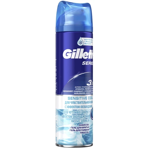 Наслаждайтесь невероятно гладким бритьем с гелем для бритья Gillette Series Sensitive Cool. Формула тройного действия с ментолом увлажняет, смягчая волоски, смазывает, обеспечивая защиту, и охлаждает, успокаивая кожу. В сочетании с бритвой Gillette Sensor3 Cool дарит уникальное холодящее ощущение во время бритья.
