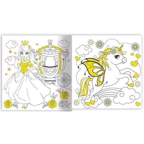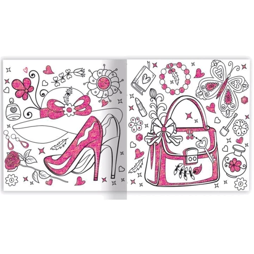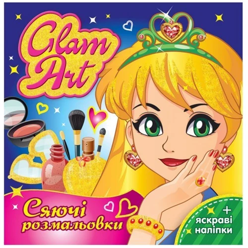 Колекція з 3 розмальовок з блискітками і наліпками. Створюй неповторні образи, вишукані мейками та модні манікюри, які сяють чарвіним блиском.