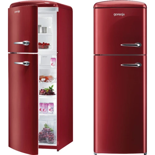 Прежде всего модель выделяется стильным и привлекательным дизайном под ретро. Холодильник располагает двумя камерами с общим полезным объёмом 294 литра, но при этом возможности заморозки находятся на уровне небольших 5 кг в сутки. Панель управления состоит из поворотных переключателей. Дополнительно реализованы функции быстрого охлаждения и быстрой заморозки. Холодильная камера располагает специальным покрытием, предотвращающим размножение бактерий. Потребление электроэнергии соответствует экономному классу А++.