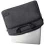 Сумка изготовлена из современного материала, внешняя сторона которого по цвету и структуре напоминает денимовую ткань, а внутренняя - водоотталкивающая. Ударопоглощающие вставки в стенках защищают ноутбук от ударов и держат форму, а ручки из искусственной кожи добавляют комфорт в эксплуатации.