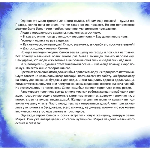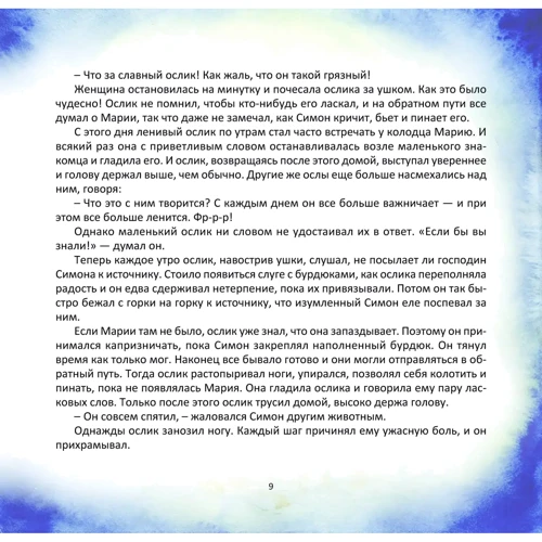 Книжка шведської письменниці Гунхільд Зехлін – це розповідь про велику силу любові, яка немічного зцілює, слабкого робить дужим, злодія – щедрим. Це історія про народження Хлопчика, якому судилося в майбутньому стати Спасителем людства, про його Cім'ю, а також про відважного й вірного маленького віслючка, без якого всім персонажам цієї історії нелегко було б витримати випробування, що випали на їхню долю.