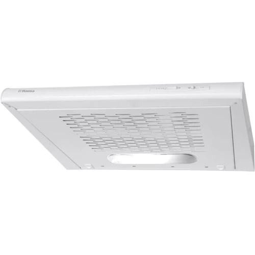 Плоская вытяжка, отвод/рециркуляция воздуха, производительность 163 м³/ч, ползунковое управление, 3 скорости, светодиодное освещение, алюминиевый жироулавливающий фильтр, ширина 60 см, цвет белый