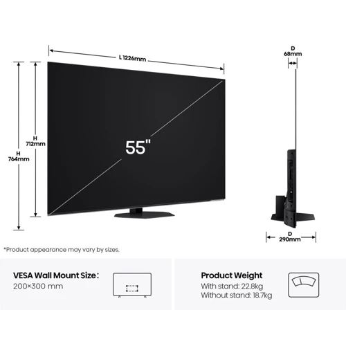 Диагональ Диагональ телевизора измеряется в дюймах (1 дюйм — 2,54 см). Наиболее популярный размер диагонали телевизора — 32 дюйма, это оптимальный вариант для гостиной. Выбирая телевизора на кухню, рекомендуем обратить внимание на 24-дюймовые модели, а в большую квартиру лучше всего подойдет телевизор диагональю от 50 дюймов. | 55" |