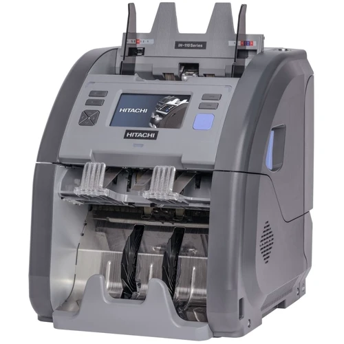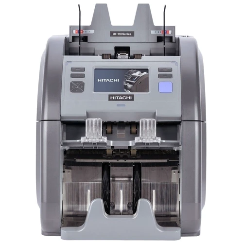 Счетчик сортировщик с двумя карманами Hitachi iH-110 вобрал в себя все передовые достижения процессинга денег. Он способен обрабатывать банкноты с максимальной скоростью 1300 бил/мин. Присутствуют функции сортировки по номиналу, ориентации и году эмиссии, сквозной пересчёт смешанной пачки, детекция по всем защитным признакам, режим кассы пересчёта.