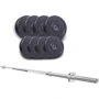 Набор состоит из дисков, покрытых ABS-пластиком, и стального хромированного грифа. Высокое качество изготовления и долговечность деталей гарантирует, что ваши тренировки с данным набором будут проходить комфортно, безопасно и с максимальной пользой.