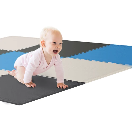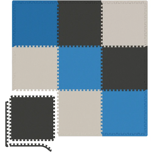 # Простая сборка В комплект входят девять частей размером 60x60 см каждая и 12 элементов, составляющих рамку коврика. Соединять все части просто и интуитивно понятно, можно быстро менять конфигурацию мата. Края элементов плотно прилегают друг к другу, создавая ровную поверхность.