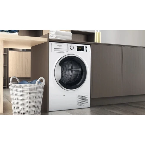 Особенности отдельно стоящей сушильной машины Hotpoint: исключительная вместимость барабана 8,0 кг, поэтому вам никогда не понадобится место. Технология 3D Air Care с системами 3D AirFlow и SoftMove обеспечивает бережную сушку благодаря нескольким струям пара и воздушным подушкам, которые сушат и защищают белье.
