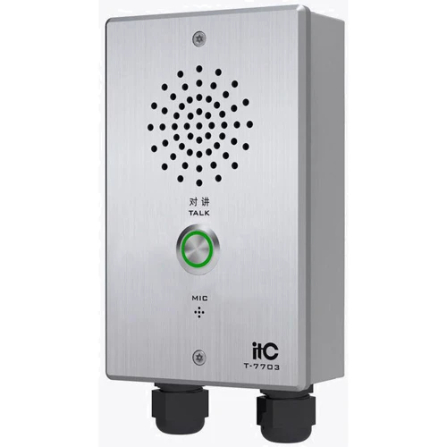 ITC T-7703 панель подходит для использования как внутри, так и снаружи, благодаря влагозащищенному корпусу. В устройстве используется высокопроизводительный промышленный процессор (ARM+DSP) со скоростью отклика менее 1 секунды. Одна кнопка для помощи.