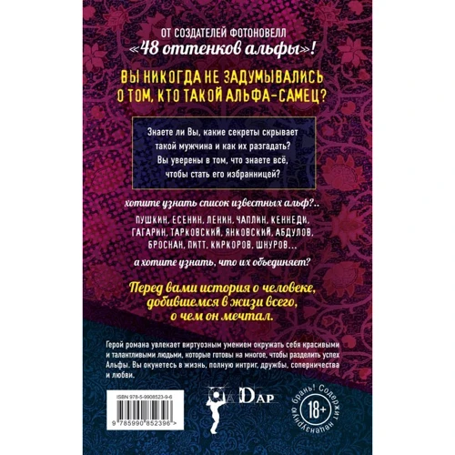 Перед вами необычный проект - результат художественного исследования темы Альфа-самца, с одной стороны окруженной мифами и домыслами, а с другой - имеющей теоретическое обоснование. Миф заключается в том, что Альфа-самец - коварный соблазнитель. На самом деле это тот редкий тип успешного мужчины, которым женщина сама желает быть соблазненной. Отсюда следует модель поведения такого мужчины, и соответственно женщины, оказавшейся рядом.