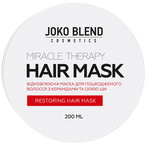 Маска для поврежденных волос Miracle Therapy Joko Blend с керамидами и маслом ши восстанавливает структуру сильно поврежденных волос, защищает от негативного внешнего воздействия: термо-укладки, окраски, выпрямления. Комбинация керамидов и масла ши возвращает волосам блеск, эластичность, восстанавливает и питает волосы изнутри. Натуральные масла отлично подходят для придания волосам естественного блеска и гладкости.