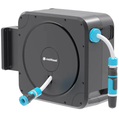 Центробежный тормоз обеспечивает безопасное втягивание шланга, что важно, когда в саду находятся другие люди, особенно маленькие дети. Это также минимизирует риск повреждения фасада здания.