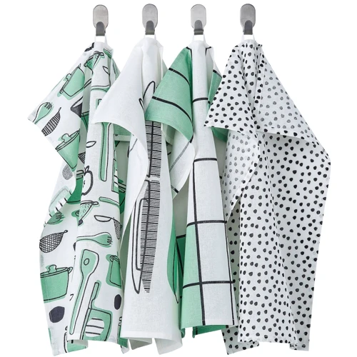 Квадраты, точки и забавная кухонная утварь украшают эти 4 износостойких кухонных полотенца из чистого хлопка. А поскольку нитки представляют собой окрашенную пряжу, они сохраняют свой цвет - даже после многократных стирок.