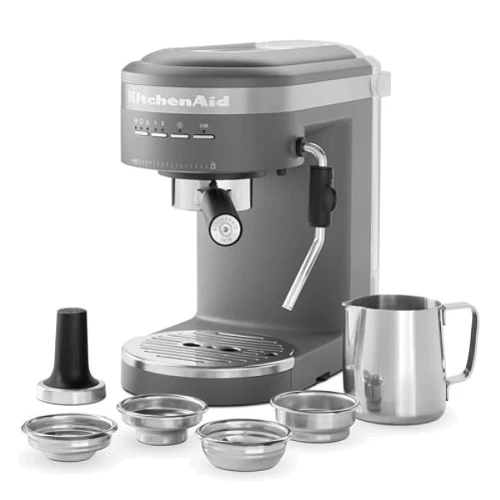 KitchenAid 5KES6403EDG - рожковая помповая кофеварка, 1470 Вт, корпус металл/пластик, капучинатор ручной, используемый кофе: молотый, цвет серый