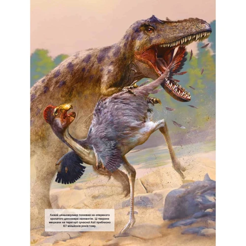 Яскраві ілюстрації дозволять поринути у доісторичні часи Землі, коли мирні стада мігруючих зауроподів зазнавали запеклих нападів хижих тероподів, у небі безроздільно панували грізні птерозаври, а океанські глибини були сповнені зубастих іхтіозаврів.