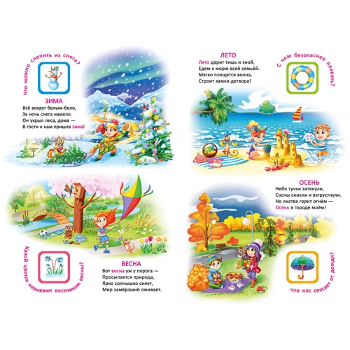 Яркая книга для малышей, которая поможет изучать мир с радостью! Забавные персонажи, красочные иллюстрации, веселые стишки и интересные задачи.