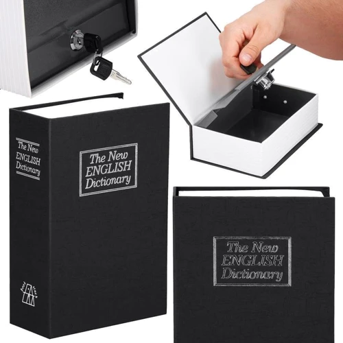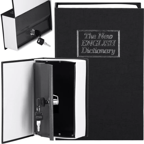 Книга-сейф от польского бренда Springos - это практичный и оригинальный аксессуар для хранения мелких ценностей, таких как банкноты, монеты, документы, ключи или носители информации с важными данными. Ее особенностью является то, что она имитирует книгу - английский словарь, такой стиль позволит естественно расположить ящик на книжной полке или комоде, не привлекая внимание посторонних людей. Кешбокс от Springos имеет дизайн с жесткой обложкой украшенный посеребренной надписью на лицевой стороне (имитирующей обложку книги) и на боковой (имитирует ее корешок). Стенки изделия изготовлены из стали, а запирается и открывается он на ключ. Механизм с замком установлен на внутренней обложке, которая открывается подобно титульной странице книги. В комплект входят два ключа. Такой нестандартный гаджет можно использовать дома, офисе или во время путешествий, чтобы защитить ваши ценные вещи.