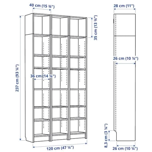 Глубокие и регулируемые полки помогут вам придать BILLY индивидуальность и использовать его по своему усмотрению - для хранения повседневных вещей, памятных сувениров или других коллекционных предметов.