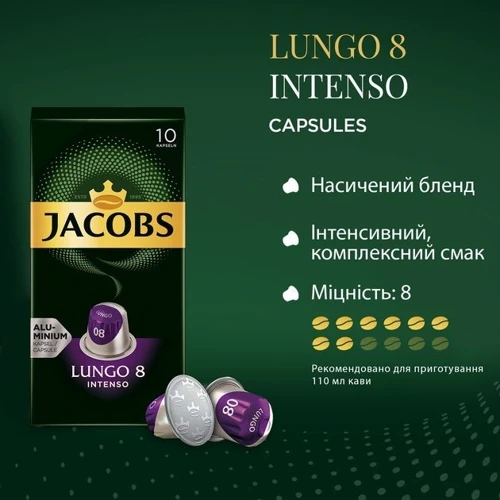Попробуйте сбалансированный Лунго с густой пенкой – благодаря алюминиевой капсуле от Jacobs , надежно защищающей аромат отборных кофейных зерен Jacobs.