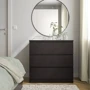 Простой стиль, хорошо впишется в спальню или любое другое помещение. Плавно выдвижные ящики и разнообразные варианты отделки – выбирайте по своему вкусу. Внимание! Надо крепить к стене.