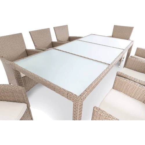 Мебель VERONA - это набор уличной мебели на восемь человек . Большой семейный стол с деревянной столешницей, восемь удобных кресел с подушками и деревянными подлокотниками, а также монтажный комплект - все это вы найдете в комплекте. Верона идеально подходит для отдыха и совместного времяпрепровождения на террасе или в саду. Благодаря использованию качественного искусственного ротанга, мебель эстетичная, функциональная и в то же время легкая.