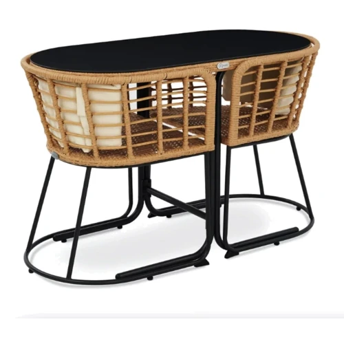 Садовая и балконная мебель иногда подвергаются разным погодным условиям, которые могут нанести вред, поэтому в основе дизайна мебели Celano используются современные, прочные материалы, устойчивые к влаге, дождю, снегу, а также к высоким температурам и УФ-лучам. Устойчивый, стойкий к коррозии каркас из гнутых стальных труб черного оцинкования, дополнен плетением ручной работы бежевым техноратангом. Волокна техноротанга отличаются высокой прочностью и эстетическим внешним видом, имитирующим натуральный ротанг.