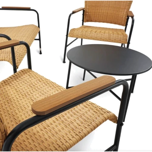 Комплект садовой мебели Corato от Di Volio - это гарантия приятного и уютного отдыха в саду и на террасе. Кофейный набор состоит из двухместного дивана, двух кресел и журнального столика. Минималистичный дизайн мебели, основанный на простоте форм и функциональности, а также сдержанные цвета позволяют идеально вписываться практически в любое пространство. Изготовлен из современных, устойчивых к атмосферным воздействиям материалов - техноротанга и стали с порошковым покрытием, что обеспечивает долговечность мебели для террасы на протяжении многих сезонов.