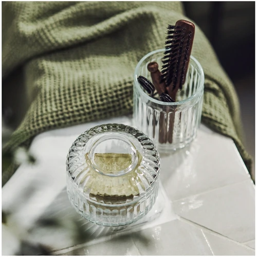 Освежите свою ванную комнату нотками гламура с помощью аксессуаров SILVTJÄRN. Этот стеклянный контейнер идеально подходит для косметических подушечек, ватных палочек или украшений, а стильную крышку можно использовать как мыльницу.