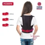 Широкий пояс закрепляют спереди на липучую застежку, узкие эластичные ленты перекидывают вперед, обводят вокруг плеч, перекрещивают на спине и закрепляют липучей застежкой на животе, при этом корсетные вставки должны располагаться по обе стороны позвоночника.