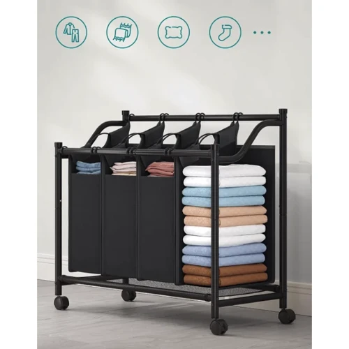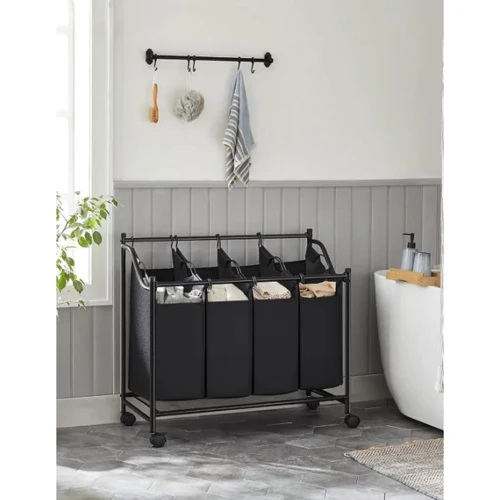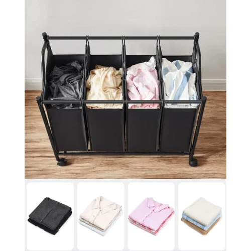 Сортировщик одежды с отдельными контейнерами изготовлен из стальных труб с пластиковым покрытием и полиэстера 600D. Такая конструкция обеспечивает максимальную прочность и долговечность, выдерживая нагрузку до 40 кг. Вы можете быть уверены, что ваша корзина прослужит вам много лет, сохраняя свои свойства и привлекательный вид.
