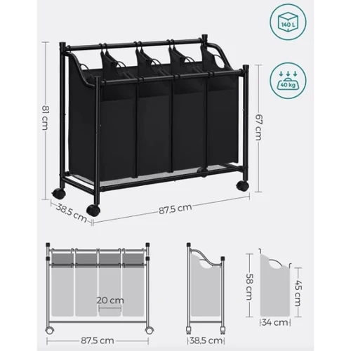 Корзина для белья Breesal с четырьмя отделениями общим объемом 140 литров идеально подходит для большой семьи. Благодаря своей емкости, вы сможете хранить большое количество белья, одежды или игрушки, не беспокоясь о том, где разместить все вещи. Четырехкамерная корзина для белья позволяет удобно сортировать ваши вещи по категориям: белое белье, цветное белье, полотенца и даже щекотливые вещи. Благодаря продуманному дизайну, каждая корзина имеет свои размеры (20 x 34 x 45/58см), что обеспечивает удобное размещение и быстрый доступ к содержимому.