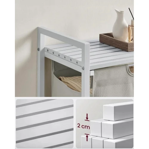 Выдвижная корзина Leobert в стиле Loft - это больше, чем просто место для хранения вашей одежды, игрушек или постельного белья. Его продуманная конструкция позволяет легко сортировать белье благодаря двум отдельным отделениям. Отсек может вместить до 65 литров, что обеспечивает достаточное место для хранения белья. Это значительно упрощает процесс стирки, помогая вам экономить время и усилия. Кроме того, корзина оснащена удобными ручками, что облегчает ее перемещение.