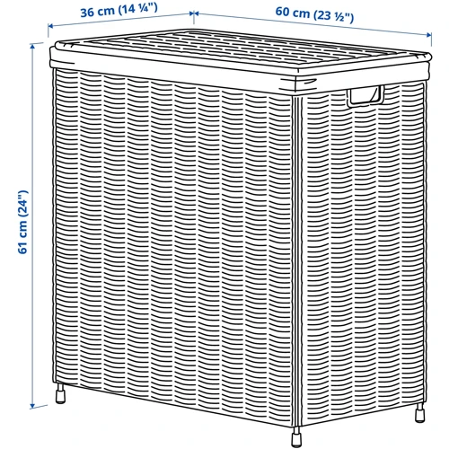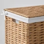 Корзины плетутся вручную искусными мастерами, поэтому каждая корзина уникальна. Она прочно стоит на своем месте благодаря металлической раме. Корзина для белья имеет небольшой вес, поэтому ее можно легко перемещать, когда нужно вымыть пол.