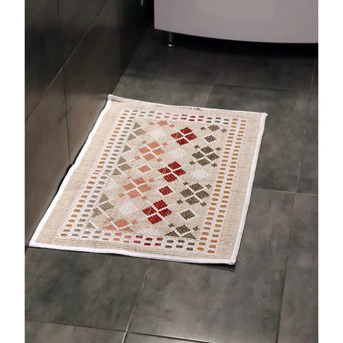 Универсальный коврик с разноцветным рельефным узором. Коврик создаст атмосферу уюта и гармонии в любой комнате (гостиная, спальня, кухня или ванная комната). Изделие выполнено из хлопка с добавлением волокон полиэстера для повышения износостойкости. Коврик приятный, легкий, дарит ножкам тепло и комфорт, практичный и долговечный в эксплуатации.