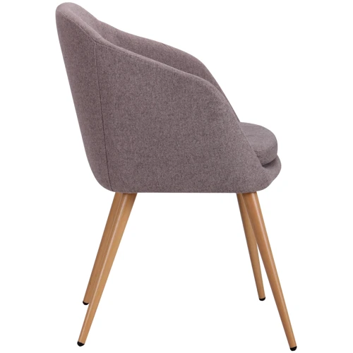 Лаконичное, состоящее из плавных линий, просто идеальный вариант. Каркас окрашен в цвет бука, но изготовлен из стальной трубы, есть специальные подложки, чтобы не царапать пол, такой каркас не только прочный и не боится влаги или механического воздействия, но и выдерживает вес до 120 кг и благодаря расположению ножек – устойчив. Спинка, подлокотники и сидение мягкое, тканевая обивка представлена в нескольких вариантах.