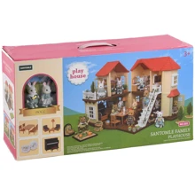 Деревянный трехэтажный кукольный домик с мебелью и фигурками (TX0091)