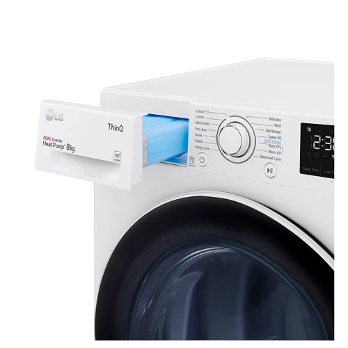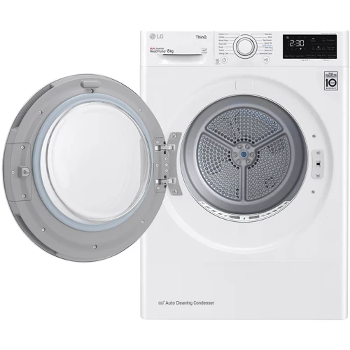Машина для сушки белья LG RH80V3AV6N настолько вместительна, что за один цикл в ней можно высушить до 8 кг белья, а именно несколько комплектов спального белья или 5 банных халатов. При этом за год (160 циклов) потребляет всего 211 кВт.