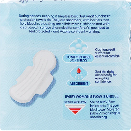 Гигиенические прокладки для месячных Libresse Classic Protection - комфорт и защита по доступной цене. Внутренний слой надежно поглощает выделения.Специальные углубления направляют жидкость к центру, предотвращая протекания по краям. Имеют мягкую поверхность. Выделения каждой женщины уникальны, поэтому на упаковке мы используем V-индикатор выделений, чтобы подобрать идеальную прокладку. Большего красного в индикаторе означает большую степень впитываемости.