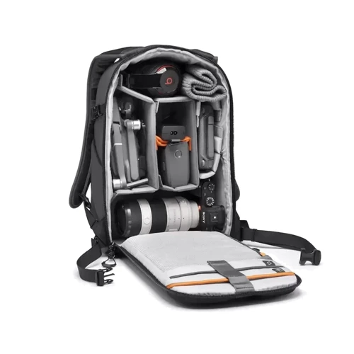 Новая схема внутренних перегородок предлагает улучшенные возможности для хранения различного оборудования: беззеркальных камер, смешанных комплектов оборудования и не связанных с фотосъемкой аксессуаров, а также дорожного штатива, 10-дюймового планшета, 13-дюймового ноутбука и других принадлежностей. Усовершенствованные молнии YKK® размером 10 мм отличаются легкостью перемещения застежек, а противоударные вставки из формованной пены EVA обеспечивают повышенную защиту ценного оборудования, когда рюкзак стоит на земле. Рюкзак оборудован отделением-органайзером на молнии и съемным мягким чехлом для аксессуаров.