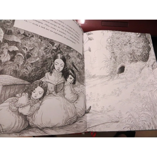 Вдохновившись гениальностью замысла, Крис Ридделл шаг за шагом создавал волшебные иллюстрации к сказке про Алису. Герои его рисунков буквально оживают на страницах этой книги и освежают ее. Смелая, яркая, эмоциональная — это все про книгу «Приключения Алисы в Стране Чудес» с иллюстрациями Криса Ридделла.