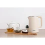 Внутренняя колба, крышка и носик изготовлены из высококачественной нержавеющей стали, совместимой с пищевыми продуктами, что обеспечивает чистоту воды и рассчитаны на долгий срок службы. При нажатии кнопки механизм открывания крышки срабатывает мягко и плавно, исключая разбрызгивание конденсата с крышки. Скрытый нагревательный элемент обеспечивает быстрое кипячение, надежность и простоту очистки чайника, а встроенный контроллер защищает от перегрева.