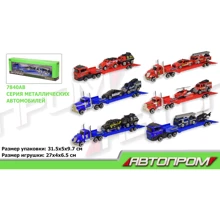 Трейлер металл 7841AB АВТОПРОМ, 1:50,6 видов +2 машинки 31,5x10x5см