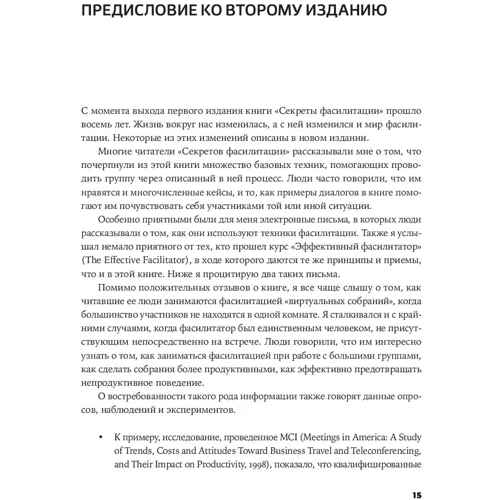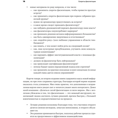 Это книга №1 по фасилитации. Здесь вы найдете все, что нужно знать для проведения успешных фасилитационных сессий. Вы узнаете, как сформулировать цель, какие вопросы задавать, как наглядно отражать полученные идеи на флипчартах и парковочных досках.