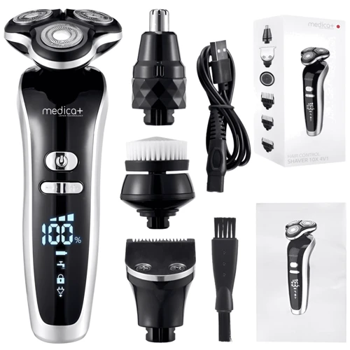 Medica+ Shaver 4v1 можно использовать во влажном и сухом режиме. Стандарт IPX6 позволяет проводить бритье с пеной и осуществлять комфортное сухое бритье. Светодиодный дисплей отображает процент заряда батареи. Напоминание о низком заряде батареи, напоминание об очистке контейнера.