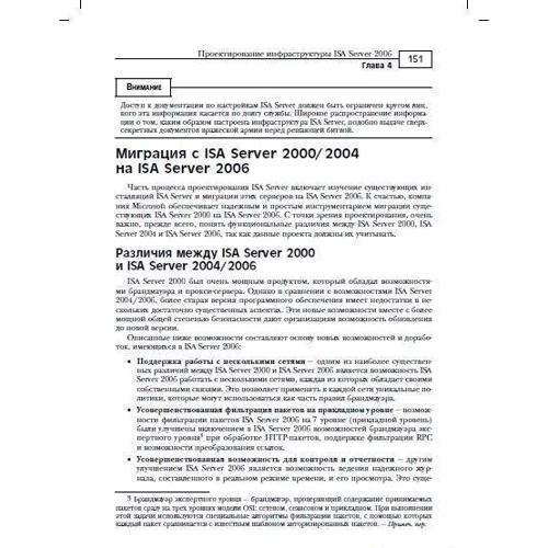 Эта книга позволяет постичь суть внутренних возможностей продукта, а также содержит полезные рекомендации и советы по проектированию и внедрению концепций ISA Server 2006.